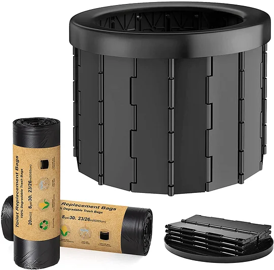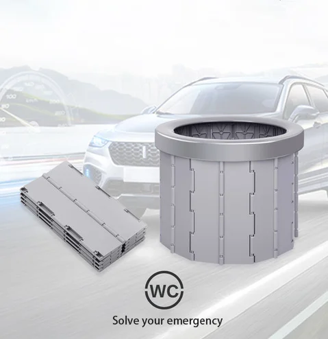 This car-mounted toilet features a sleek and portable design that combines the look and practical features. It can be simply packed into a 2-inch thick small packet, very space-saving and easy to carry!